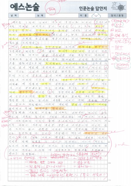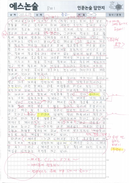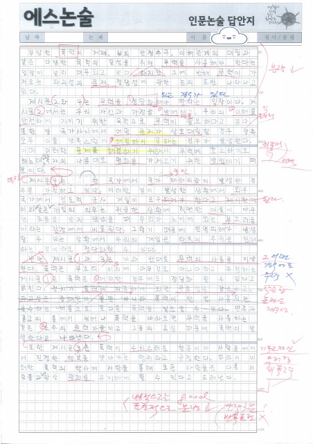 예일여고 김OO 학생 논술 답안 및 첨삭