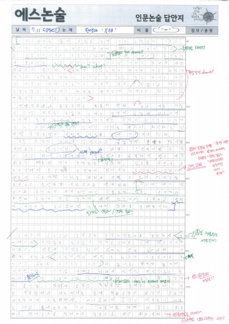 서울여고 OO아 학생 논술 답안 및 첨삭