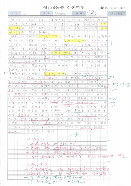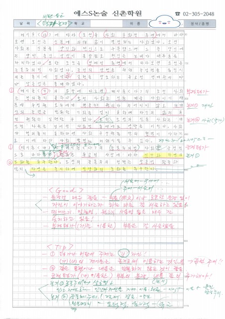 여의도여고 박OO 학생 논술 답안 및 첨삭