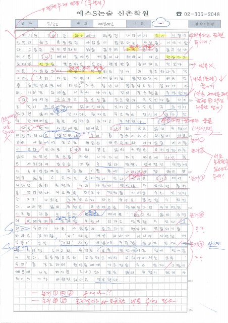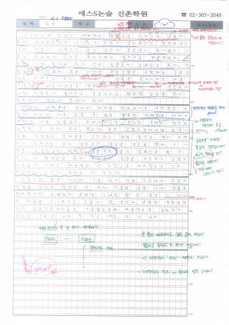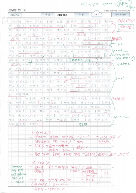 홍익여고 김OO 학생 논술 답안 및 첨삭
