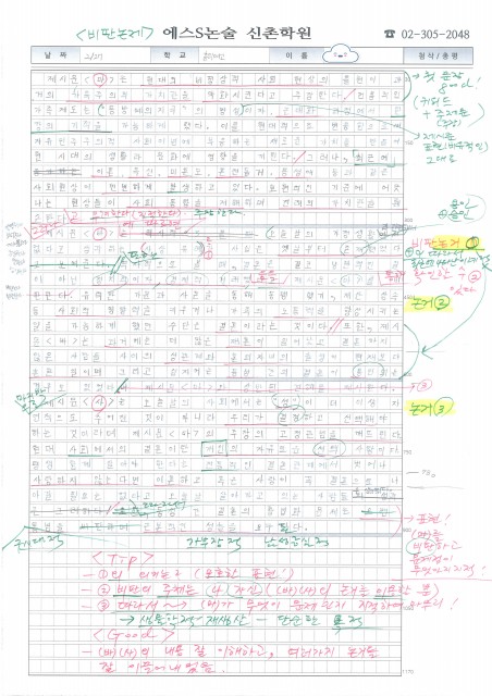 이대부고 이OO 학생 논술 답안 및 첨삭