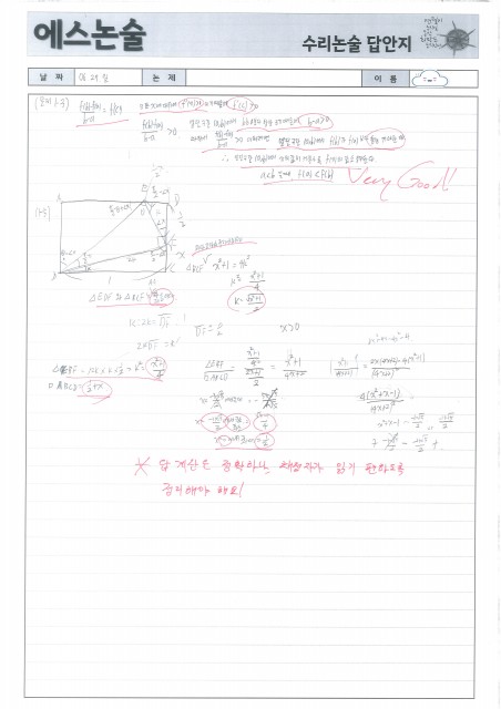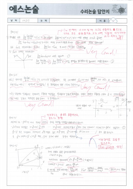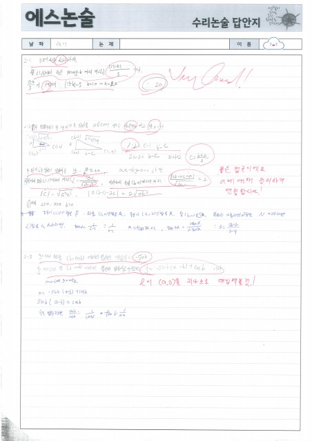 광성고 OO재 학생 수리논술 답안 및 첨삭