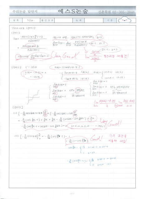 동성고 이OO 학생 수리논술 답안 및 첨삭