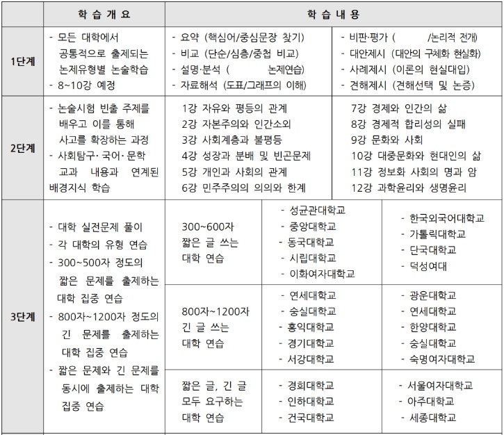 - 학교에서 대입 논술을 가르치지 않기 때문입니다